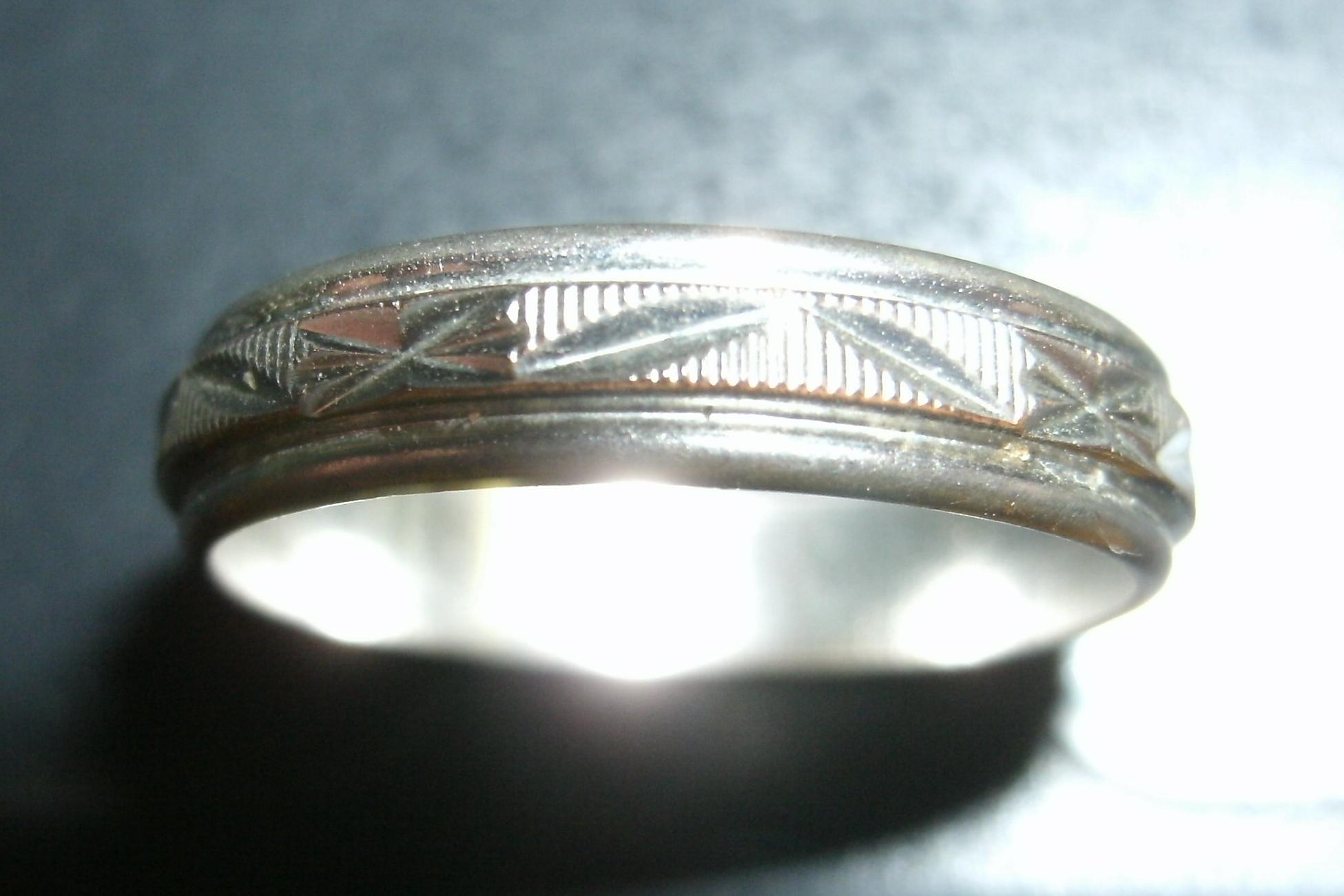 Может на картинках не очень хорошо видно,опишу.Цвет белый,полированный(изнутри,канавки снаружи),выше канавок,т.е.самая внешняя поверхность шероховатая(будто после наждачки)цвета красноватого золота,но видно что напыление.Сравнивал основной белый цвет с серебром и нержавейкой,выглядит богаче.Размер 20-21,ширина-8мм. Жду ваших мнений,коллеги. Сообщение отредактировано SandMan: Aug 18 2011, 13:00 -------------------- Таити, Таити… Не были мы ни в какой Таити — нас и здесь неплохо кормят.(с)
