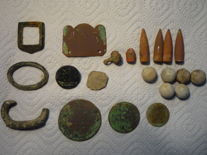 Был сегодня на развалинах кирпичного завода, там все окрестности завалены и целыми и битыми кирпичами, даже старая дорога километров 5-7 выложена кирпичем. Нормальных находок не было, кругом война была, все изрыто окопами, блиндажами и воронками. Встретил пару молодых "трофейщиков", так пообщались маленько, у них еще глаза горят блиндаж какой-нибудь разрыть, да всякой хрени военной наковырять. Я то уже перегорел этим, так если как сопутка попадется, и то если что-то необычное. Потом двинул на развалины уничтоженной войной деревеньки, из находок куча домашней утвари: лопаты, подковы, всякие металлические трубы, ,битая посуда и стекло, печные дверцы, дверные петли, не говоря уже о всяком военном мусоре, земля вся звенит и сантиметра без железа не найти. Думаю ее еще во время войны разграбили и все хорошее вынесли. Встретил рядом с деревенькой трех человек из поискового отряда. Поговорили, нормальные мужики оказались, они тоже стариной интересуются, да и кроме того еще и бойцов наших поднимают и перезахоранивают, за это респект им. Поделился с ними своими историческими изысканиями, они тож кое чего рассказали, но их больше история времен ВОВ интересовала, с находками им сегодня тоже не везло. В общем день провел неплохо, много километров прошел, кучу земли перелопатил, поообщался с интересными людьми, правда ничего путного не нашел, но это не главное.