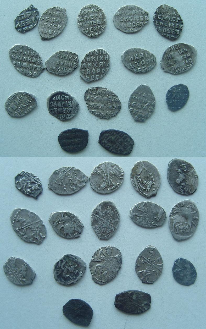 QUOTE(BURE @ May 8 2011, 14:39) Доброго времени суток Всем, Подскажите по чешуе, никак не могу разобраться. За раннее большое спасибо. Приветствую! Интересная подборочка В каталог не залезал, напишу по царям, будет интерес по редкости пишите в ЛС, - отвечу 1. Копейка Петр 1 единоличное правление Кадашевский двор 2. Копейка Федора Алексеевича. 3. Копейка Федора Алексеевича. 4. Копейка Федора Алексеевича. 5. Копейка Федора Алексеевича. 6. Копейка Федора Алексеевича. 7. Копейка Иван и Петр Алексеевичи (совместное правление 1682-1696) 8. Копейка Михаила Федоровича Романова, Москва. 9. Копейка Иван и Петр Алексеевичи (совместное правление 1682-1696) 10. Копейка Михаила Федоровича Романова, Москва. 11. Походу литой фальшак для обращения, нужно хорошее фото с двух сторон и вес, есть интерес. 12. "Сабельная" деньга Ивана Грозного, Тверь. 13. Затертая копейка с двойным ударом Михаила Федоровича Романова, Москва. 14. Копейка Федора Алексеевича. 15. Не видно лицевик, сделайте четче фото. 16. Вообще ничего не видно, аналогично. 17. Копейка Алексея Михайловича. |