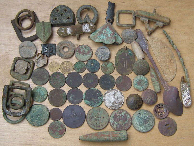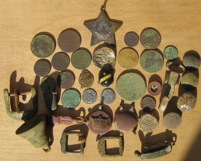 Сегодня тоже съездили покопали но правда поздновато выехали.Находок практически нет,пули за день достали.Напарник взял три серебрухи и запчасть серебрянную,у меня же пуговица и несколько монет какаликов, хорошо хоть вылетела пряга,устье от ножен и якорь.