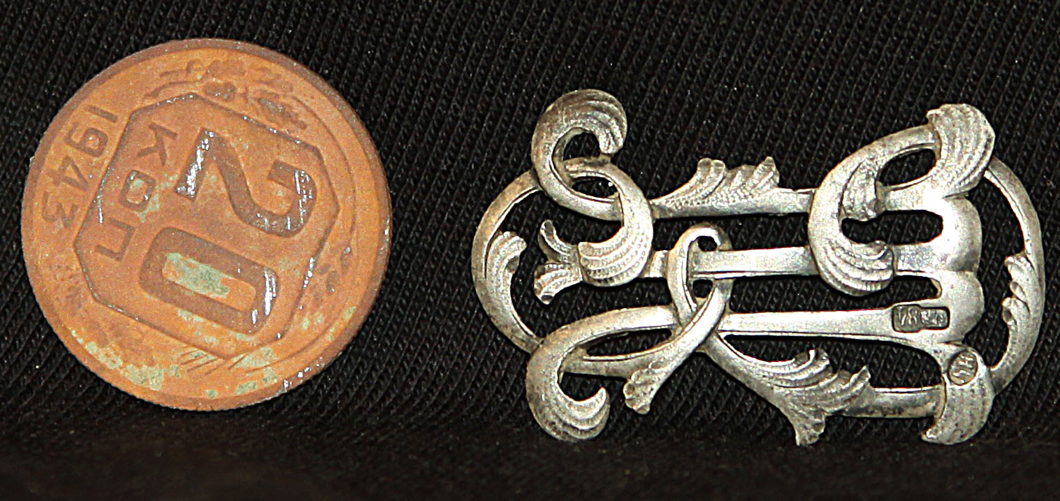 QUOTE(ftparadox @ Oct 26 2011, 21:41) проба 84, питерское производство 1908-1927(голова с буквой альфа), подскажите как выглядело крепление на таких украшениях, и где можно инфу поискать по данным изделиям.ну и оценка! Возможно с портсигара или чего то подобного...находил тоже похожие вензеля из серебра... -------------------- Собираю ненужные Вам свинцовые пломбы! :)