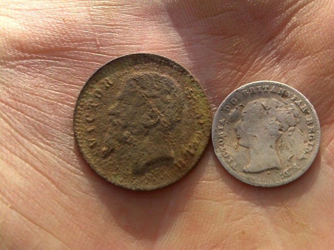 Сегодня смотался на старое место,давно там не был не пахано не кошено...из интересных находок 3 пенса серебро,два жетона игровой и платёжный.