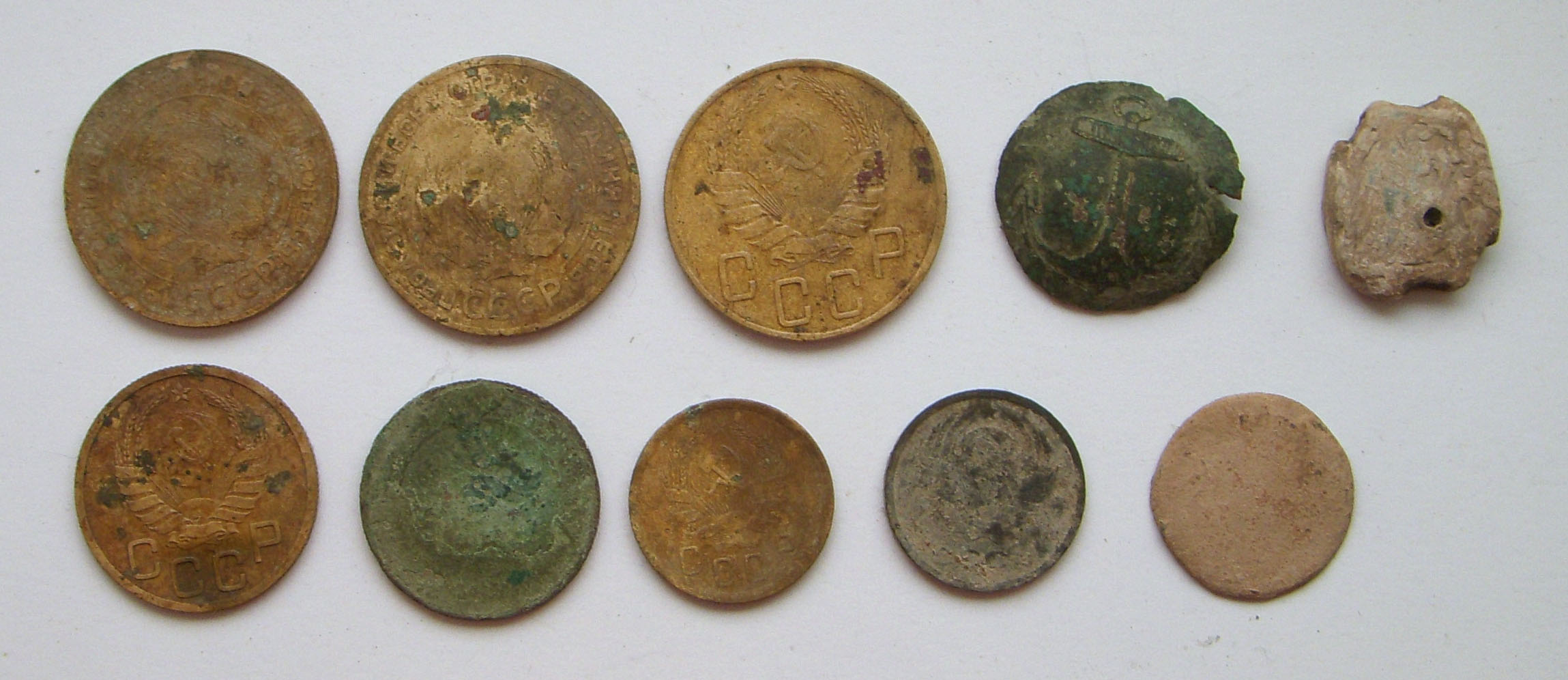Сегодня с товарищем мотались в Л.о. на разведку.... понацепляли немного монет в основном советы.... но попалась и 10ка 1891г... тоже первое серебро в этом году.... 3 хорошие пуговки... цветок-накладка.... и всякое Г.....