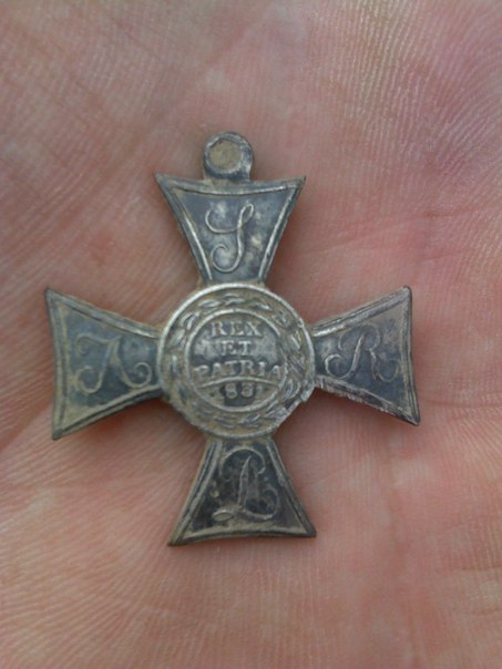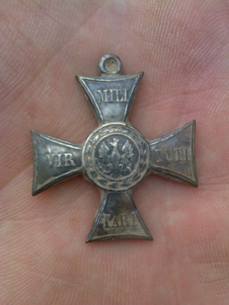 QUOTE(GAUSS @ Jun 17 2013, 23:59) А я под Пушкиным побродил,шесть какаликов и крест благополучно коцнутый лопатой Год выпуска: 1831-35 гг. Материал: Серебро. Диаметр: 28.8Х33.3 мм. Описание: Знак отличия польского ордена Военного достоинства 5 степ.учреждён 31 декабря 1831 года указом Императора Николая I.Знаком отличия 5 степени награждали строевых нижних чинов,фельдшеров и цирюльников принимавших участие в подавлении Польского восстания 1831 г.На СПБ монетном дворе отчеканено около 100 000 знаков.Знак носился на груди на ленте польского ордена Военного достоинства. Мега находка. Сообщение отредактировано jeka.piter: Jun 18 2013, 09:24 -------------------- Vivere est cogitare, vivere est militare...