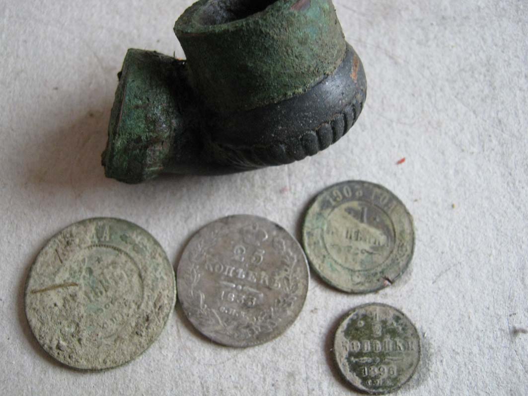 Огород вычищен, выехать куда-нибудь не было времени. Выскочило три монеты,из которых три копейки 30-х годов прострелена. Каждый год вылезет какая-то находка.