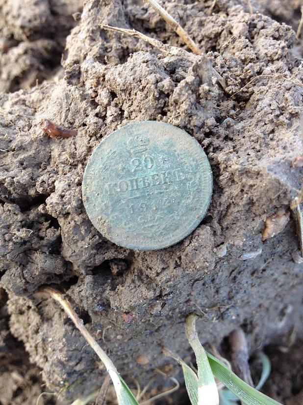 Тоже вчера покопали и попался интересный экземплярчик (1 копейка 1798 года КМ)! Пока отдыхает в мыле.........