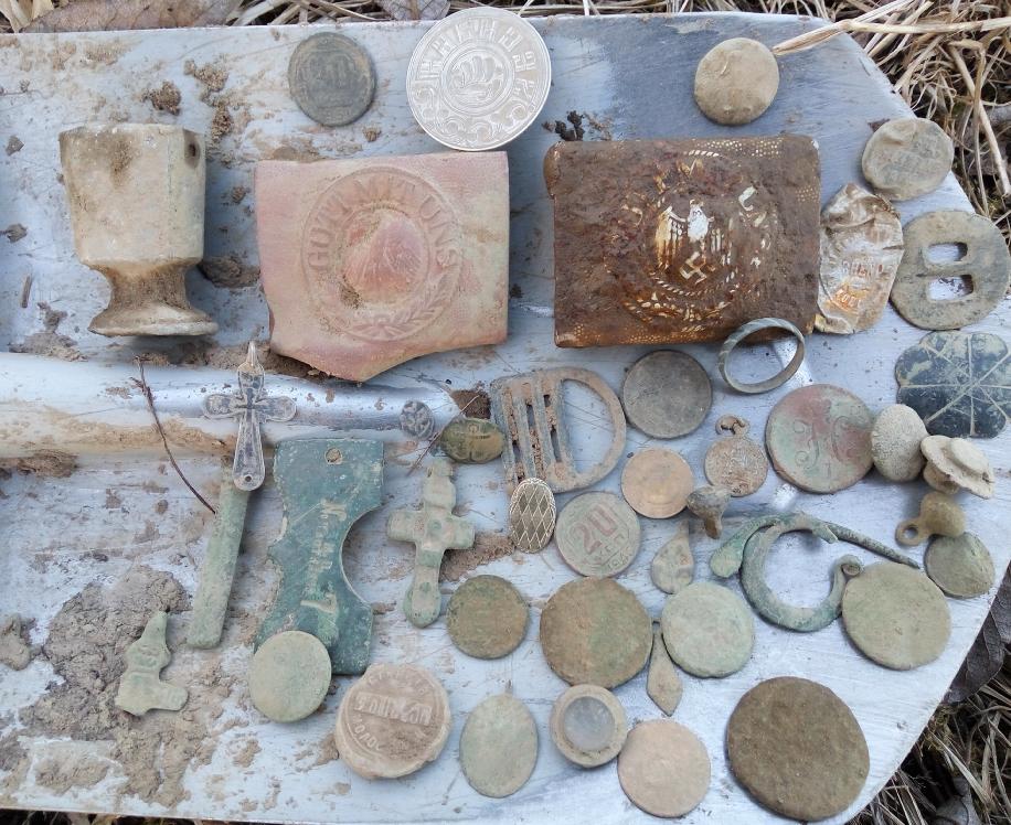 Банка от колотухи нормуль, краску серую видно кой где, но всё равно я ее зарыл, не моё это с этим гумном возиццо)). А крышечку от рукоятки забрал, мне не нужна, кому надо могу задарить)) По поводу монет... всё сложно... Я ужо практически по деревням исчезнувшим не езжу, бесполезняки, вычищенно всё везде подчистую. Находок-кот наплакал в таких местах. Просто лазию по карте, пальцем наугад, но чтоб недалеко от дома. Находок в разы больше чем на деревенских "распашках" и т.п.)) Но к сожалению, в таких местах засрато всё советами, а мне больше душа лежит к имперским монеткам, а их в таких местах, сами понимаете,ооочень мало... Плюс к этому, советы копать нервно и тяжело, сигнал вди непредсказуем, по империи канешн более понятны звуки прибора. Но все равно, душу можно отвести. С уважением!