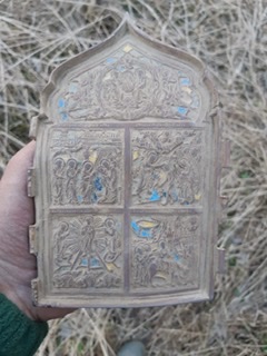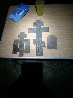 ![]() Лежит снег, но не много. Быстрый завтрак и уже машем клюшками, двигаясь в сторону деревни на берегу озера. Первые находки не дойдя до деревни, две монеты. 5 коп 1935 и не поддающийся идентификации кругляш. Вышли к самой деревне, видны развалины построек. Дома на холмах, между холмами ручьи, болота, бобровые плотины и не проходимые чаши. Все загажено консервными банками, пробками и другим советским мусором. Ямки копаются с чавканьем. Находок практически нет, а то что попадается в жутком сохране. ![]() Решили вернуться к деревеньке занятой складом леса. На обратной дороге увидели, что по нашим следам уже ходили местные. ![]() Сторож не стал возражать на нашу просьбу побродить вокруг склада, но предупредил что здесь не копал только совсем ленивый, и делать здесь не чего. Побродив час по лунному ланшафту в округе, в крайнем разочаровании собрались на перекус и совещание. Время чуть за 15-00. Решено двигаться на границу Вологодской и Ленинградской, где намечено несколько мест. |