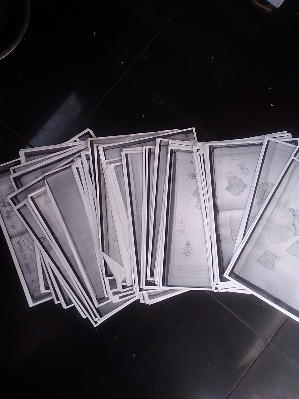 в процессе первого осмотра выясняется что, листы в атласе перепутаны, кто то их слепо сшил невпопад, отсутствует сводный лист, да и карты 1630 года написаны готический шрифтом на старошвадском, забегая вперёд, сводный лист находится во втором томе, а он вместе с остальными 7 тома и в Москве, в ЦИА