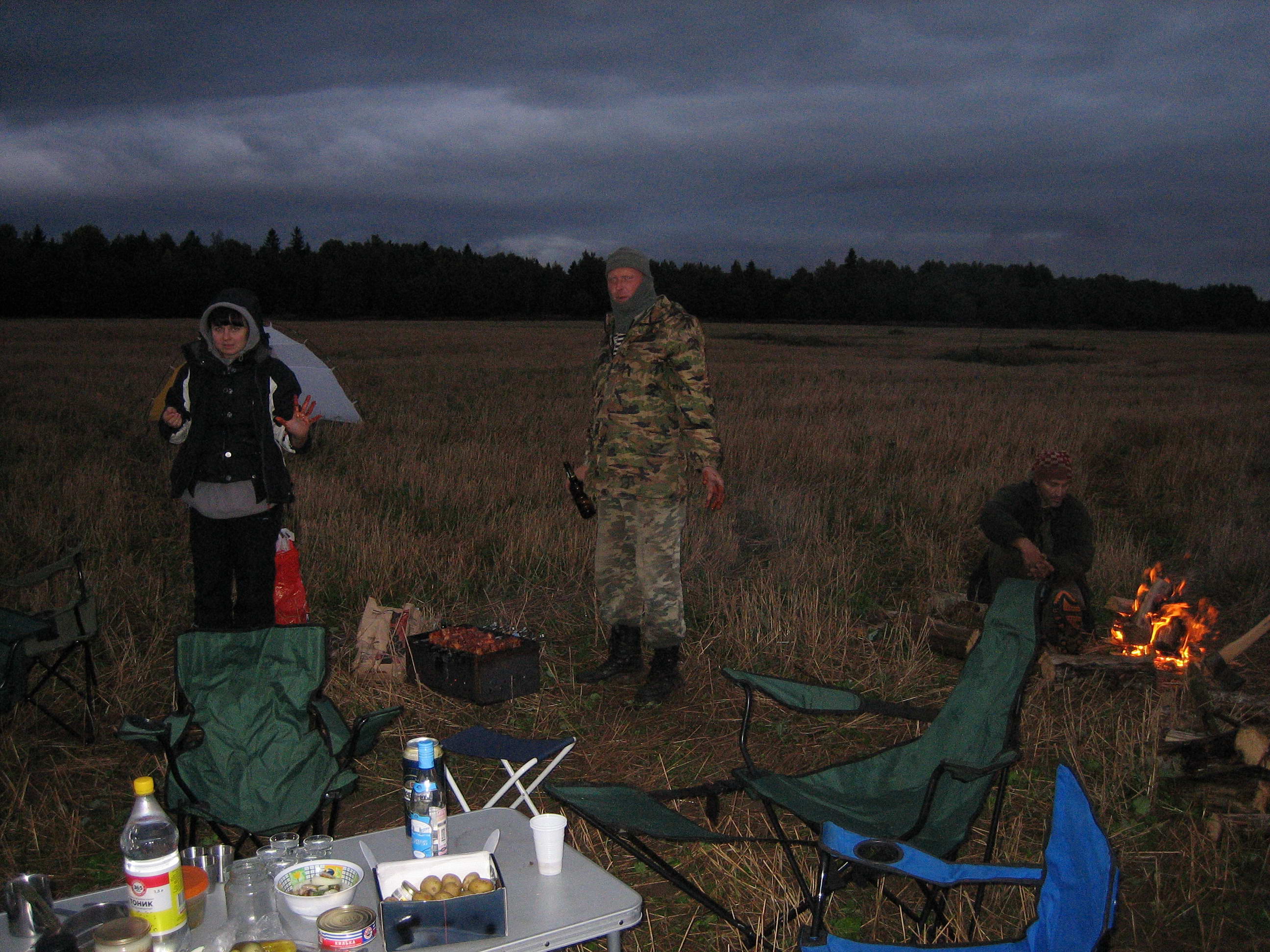 Все началось конечно давно - была идея у Morgana собрать всех вместе, и в итоге вроде как в эти выходные все произошло. Я зачем то пообещав в пятницу что буду стремиться к 9 утра в Красное село успешно проспал до 8.30 утра. Понимаю что жену в темпе уже не собрать не спеша начал собираться. Погода была пасмурная, но вроде не капало, асфальт в центре был сух.В 9 утра был звонок =- оказалось звонит ironim, типа где обещанное тело на месте сбора ))). В итоге я выехал в 11, в это время народ уже был в районе Бегуниц. По мере того как я приближался к Красному селу погода становилась все хуже и хуже, уже шел небольшой дождь, периодически переходящий в ливень. Но мы нормальные герои и всегда стремимся к поставленной цели. С кучей звонков участникам я в итоге оказался на первом поле где все собрались. Находки у парней были, но по чуть чуть. К моменту когда я приехал они уже все собирались отчаливать на другое место))) Дальше был день разъездов, поиск артефактов, и к вечеру все вернулись назад. Собственно в первый день коп у меня не задался, и накопав алюминиевой проволоки я решил думать о вечернем лагере.