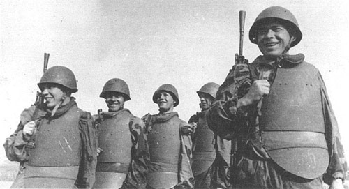 СН-42 легендарный нагрудник ВОВ. Использовался в инженерно штурмовых бригадах. Одно из знаменитейших сражений под Спас-Деменском. Где с помощю ИШБ взяли узловую точку обороны немцев. Утверждали что потеряли всего двух бойцов, коп показал обратное... Конечно нагрудник не спасал от винтовочно-пулеметных пуль и не закрывал спину, но хотябы давал надежду.