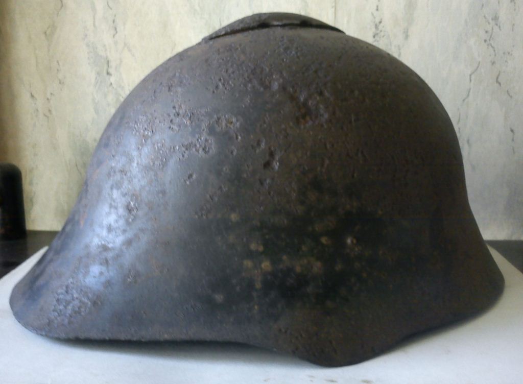 Мало ли, могла девушка санитарка носить, разведчик, зенитчик, но пригляделся смутила лобовая часть ( слишком скошенна ). Потом, из истории событий знаю, до войны вряд ли, кто-то обрезал каску, устав запрещал. А найдена она в тех местах, где в начале войны, были беспрерывные бои, и войска с боями, спешно отходили, думаю не до обрезаний было. Вот и интересно мне, что за чудо такое. |