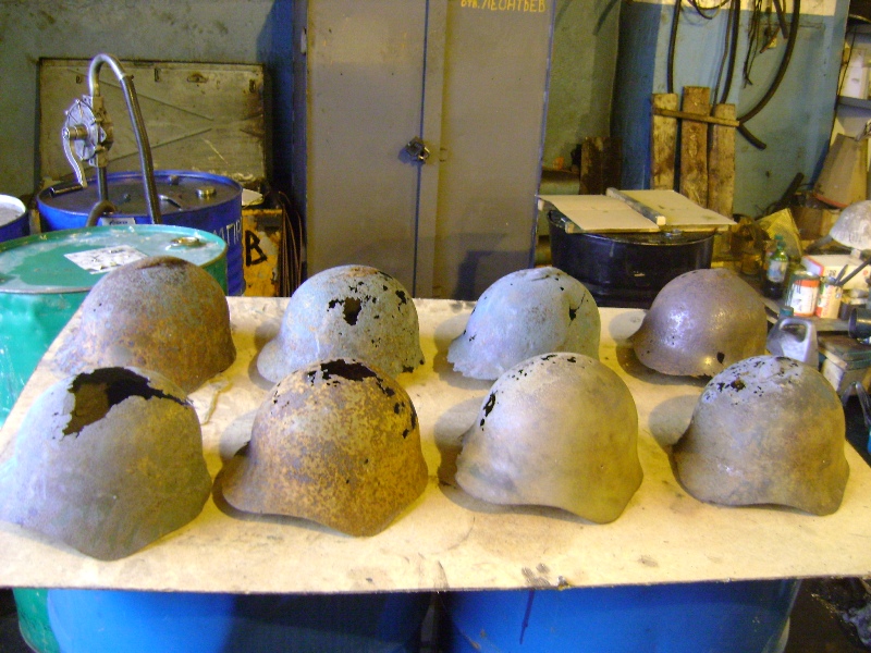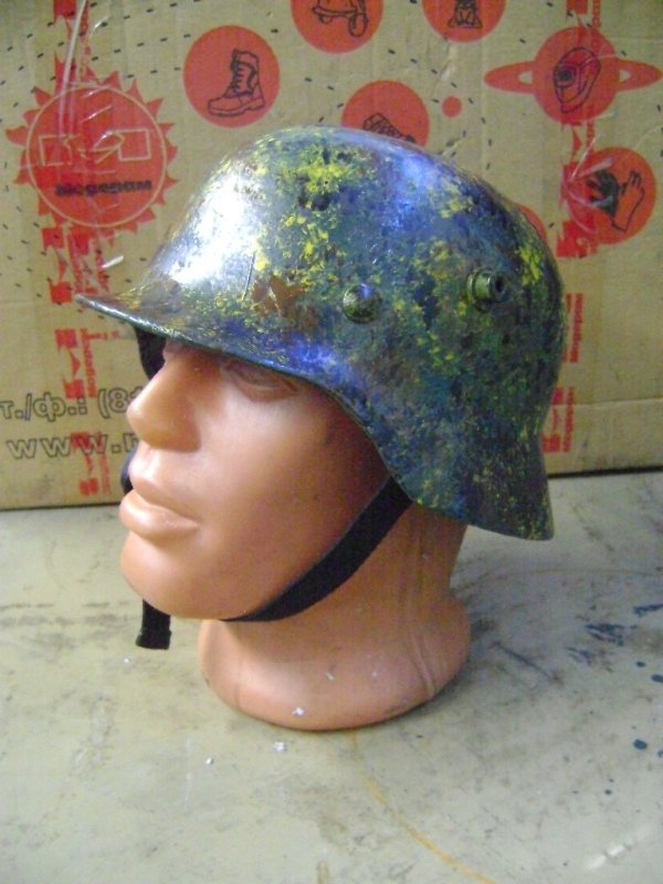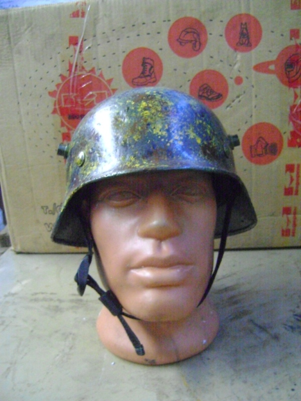 Выписал вместе м "халхинами" и М-35. Хороший, с умеренным ситом, но без дырок. Со стороны смотрелся вообще как целый. Обработал электролизом, заклеил эпоксидкой, зашпаклевал. Особо не напрягался, ибо для себя делал. Вместо аутентичных вставил брутальные "рога", наподобие как у М-17. Покрасил на два слоя "мулькой" под фельдграу, после высыхания затёр шкуркой с водичкой и опять покрасил на два раза мягким поролоновым тампоном.