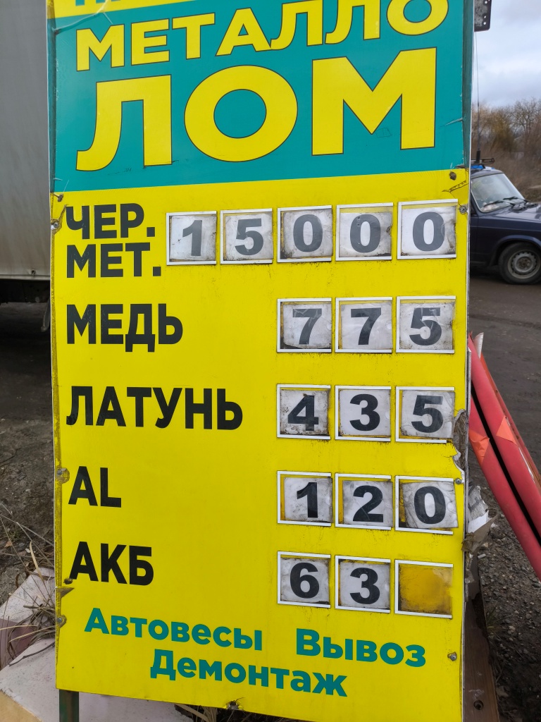 QUOTE(Klu @ Feb 1 2025, 22:30) У меня в городе пока цена держится.Как перед Новым годом на 50 коп с 21р уронили,так пока и есть.Сегодня сдавал на двух приёмках.На одной сдал цветнину и тяжёлый металл,на другой жесть.Обычно сдаю на одной,на той где сегодня сдал жесть,но они опустили цену ещё на 50 коп за чёрный и медь опустили до 720р.Хотя чем у них хорошо,они тяжёлый и жесть берут по одной цене.На остальных приёмках жесть идёт ниже по цене. Цены огонь. |