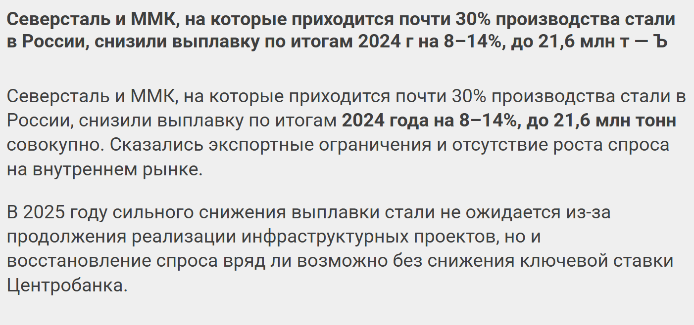 QUOTE(Сослуживец @ Feb 5 2025, 19:33) Всем добра! Судя по последним новостям железного рынка,сливки в ближайшее время не ожидаются https://www.kommersant.ru/doc/7479288?from=main большинство этих прогнозов политизированы и спекулятивны, согласен с asgo за откатом обязательно будет подьем, причем кмк в ближайшем будущем, тут только одни заводы впк практически во всем мире сейчас работают так, как во время холодной войны не работали и спрос не уменьшается на продукцию,а только растет Сообщение отредактировано комановский: Feb 6 2025, 07:52 |