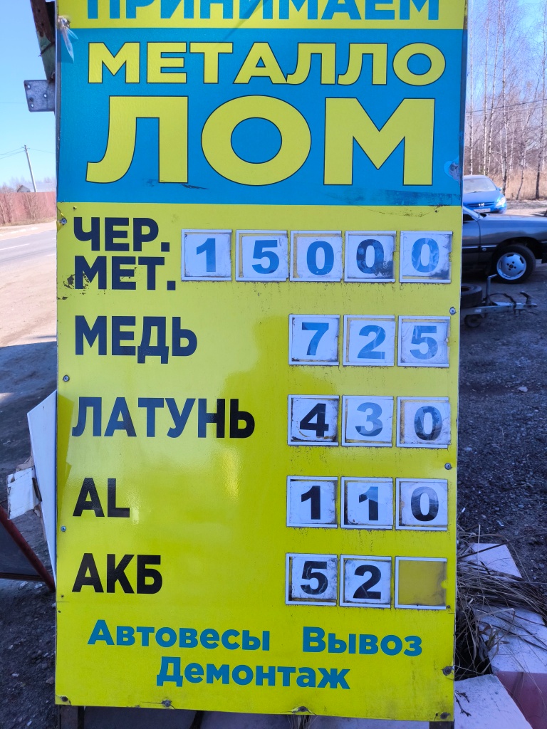 QUOTE(обер-мародер @ Mar 24 2025, 21:43) Челябинск Черный 19500 Медь 780-805 р/кг Люминтий 140-190 р/кг Все цены по безналу. Очень даже не плохой , по нашим временам, ценник. Особенно на медь. |