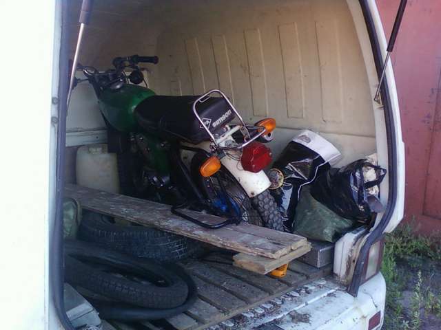 Сейчас под рукой есть только фото будки каблука с загруженным туда мотоциклом. Так что, выставлю, что есть. Всё-равно это даёт общее впечатление об объёме будки.