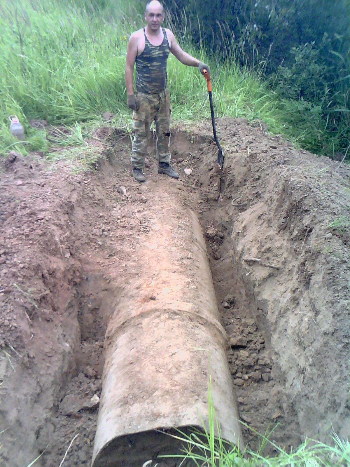 QUOTE(Мд_поисковик @ Jul 31 2011, 08:52) Вчера заглянул на разоренную ферму где уже сам раньше копал чернягу.немного порадовала найденная труба длинной 6 метров толщина стенки 12 мм.диаметр 1000 мм или чуть менее.глубина залегания до верхней части 1,5 -2 штыка.теперь вот в раздумьях как же ее выкопать и вывезти.может нанять экскаватор и эвакуатор с манипулятором?(от райцентра 12 км) вот точно такую трубу еду сегодня откапывать,такие-же размеры.уважаемые как выщетать ее вес.сегодня будут фото. |