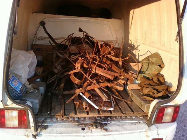 В пятницу немного поработал. Брал с собой «на дело» МД, но он не понадобился. Металл был виден из земли, оставалось его только выкапывать и выкарчовывать. Это место, где когда-то располагалась воинская часть. Работал с обеда и до темноты. Вымотался до предела. Больше всего времени и сил заняло перетаскивание железа к машине. А это около 150 метров. Если бы не это обстоятельство, металла набрал бы, естественно, гораздо больше. Но место расположено так, что к нему не подъехать на машине. Да и авто такое, что рискованно съезжать с асфальта. Можно сесть по самые… гогошары. Больше времени и сил уйдёт тогда на то, чтобы опять выбраться на дорогу.