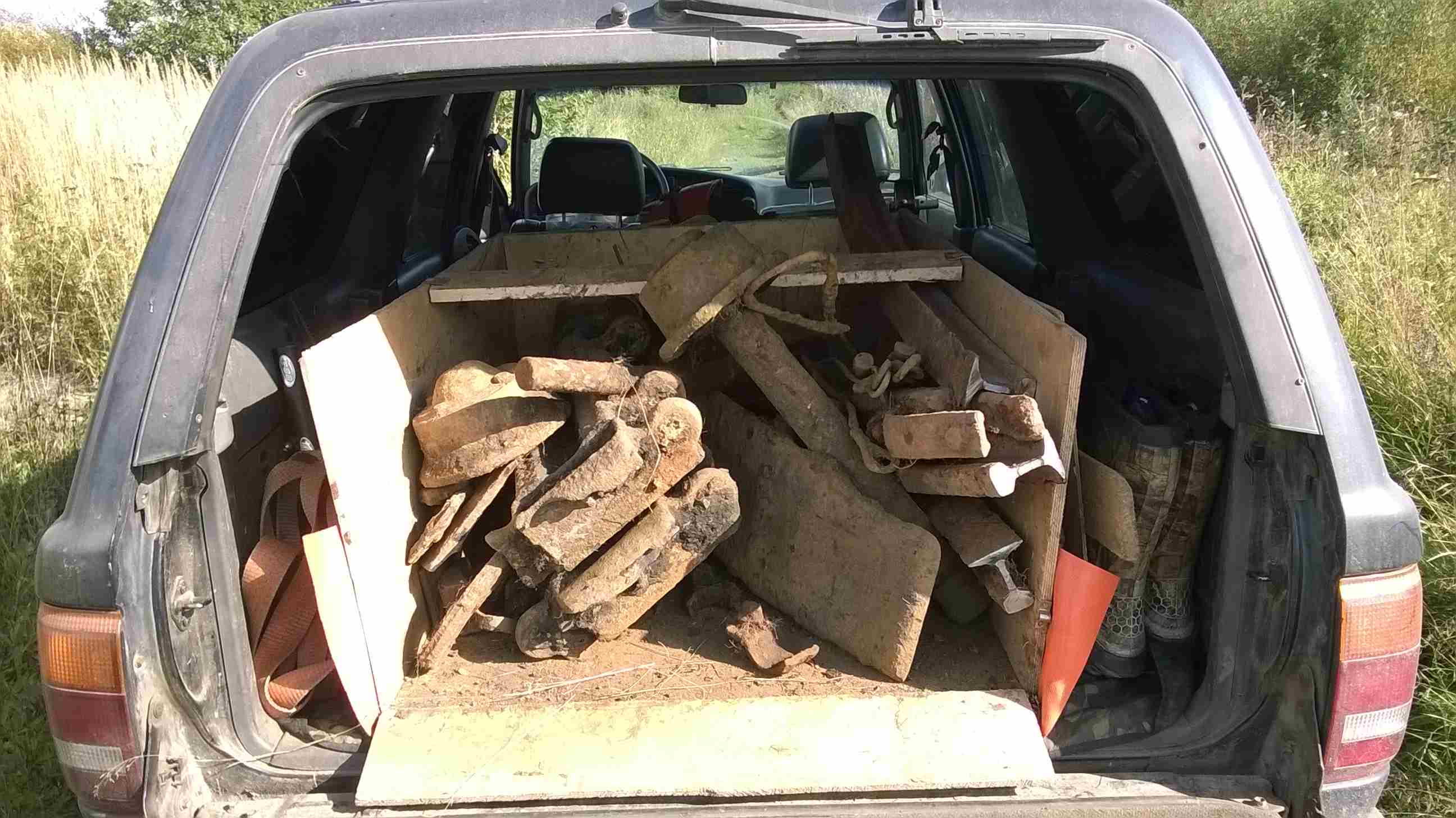 Максим, как я понимаю это железо было в воде, по крайней мере у нас оно в таком сохране только там. В низу на фото , как понимаю багор. Мне тоже попадался подобный, но по крупнее. Вес его 8 кг, внутрь жердь впихивалась. Ума не приложу как им багрить. Первая мысль, это пожарный багор, которым при помощи досади расталкивали бревна.