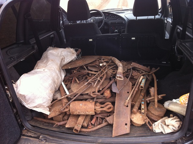 Вчера опять после работы на пару часиков скатался. Нашёл более менее хабарное место, раньше была площадка под металлолом с шахты. Мелочи много, хватит не на один выезд. Причём место битое, ямы имеют место быть, но то ли искали кабеля, то ли крупный чермет. Так как опускаю катушку в старые ямки а там перегруз, лопату втыкаю - лист, пару таких мест порыл, листы тонкие 3-4 мм, и лежат на полуметре и размер не маленький, пока откопаешь семь потов сойдёт, видимо предыдущих копателей более "жирные" железяки интересовали. Сегодня утром "сдался", на рубль с лишним (примерно за 5 часов копа), цена стала 8,70. Правда приёмщик засор поставил в 10%, ну это не проблема, буду сортировать. Почва там отвал с шахты, металл ржавеет быстро и налёт на нём толстый образуется, лопатой устанешь счищать. На приёмке в куче металла увидел парочку ИБП и аккумы с них, поменял 1 к 1 на свой металл, аккумы у нас по 22 руб/кг ну и трансформаторы там "приятные". Обленились приёмщики, много чего интересного у них вместе с металлом лежит.