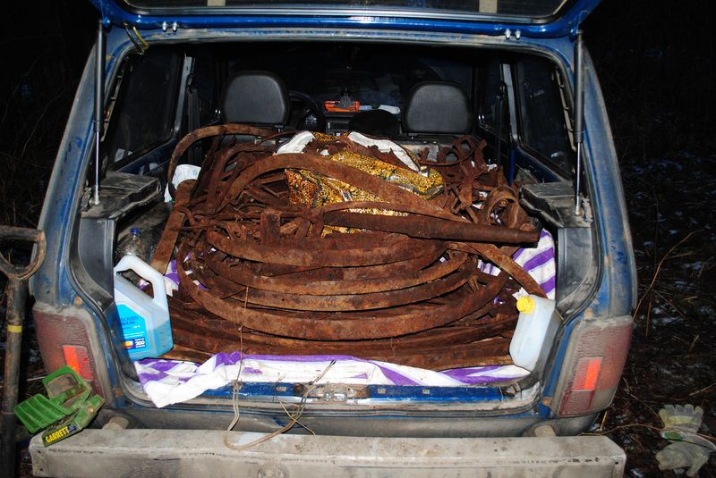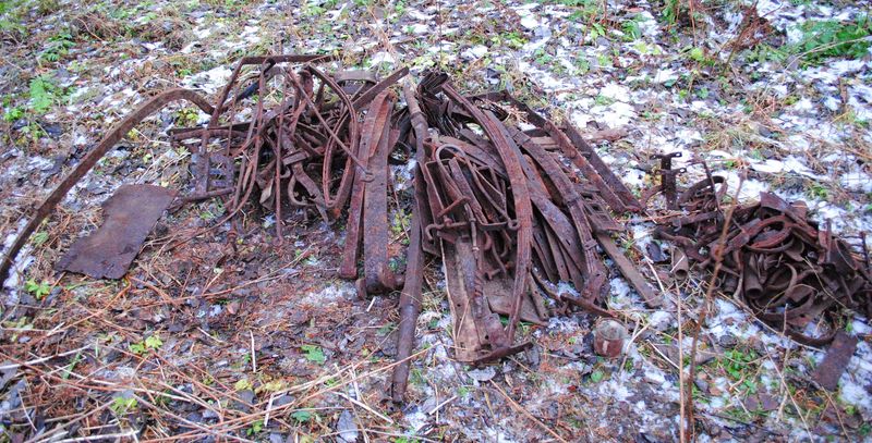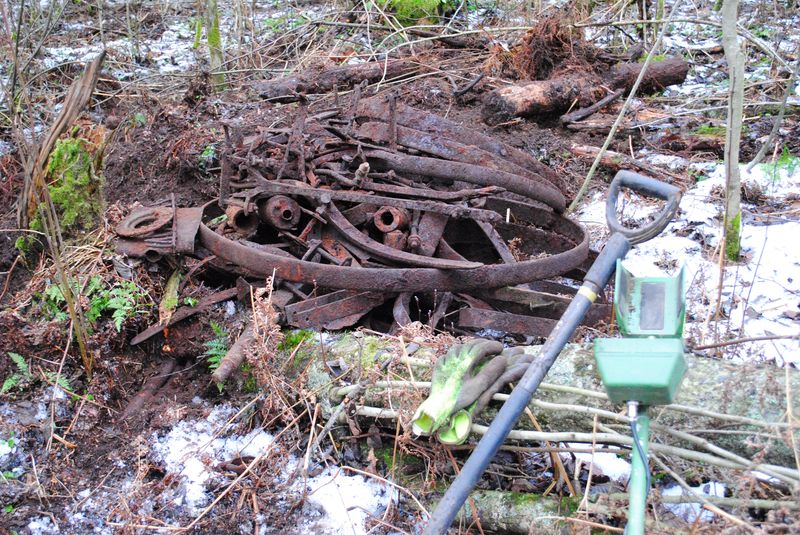 Предпринял сегодня вылазку. Благо погодка выдалась хорошая. Туда, куда хотел, было не проехать – дорога после снега и оттепели заледенела, машина не держится на бровках, падает в колею, а местами она глубокая, повис бы на мостах. Понял, что в темноте выезжать назад на груженой машине будет очень геморно, заехал к одному бывшему хутору. Начал от машины, постепенно удаляясь, и складывая металл в кучки. За три часа уйти удалось метров на шестьдесят, кучек получилось пять. Среди прочего, попалась армейская повозка времён войны в разборе, частично скинутая в воронку. Длинная ось вросла в дерево, а бензопилу сегодня не брал, да и всё равно бы она в Ниву не влезла. К весне надо бензоболгаркой обзаводиться... 200 кг, думаю, точно есть. Жесть брать не стал, толку от неё... Складываю всё пока в контейнер, весной сдам вместе с ним)) Дай Бог цена не упадёт. На той неделе тоже выезжал, но отчёт будет позже, там эпопея надолго... Фото по порядку: ![]() ![]() ![]() Сообщение отредактировано Nordstern: Dec 11 2014, 00:34 -------------------- Каждому - Своё.