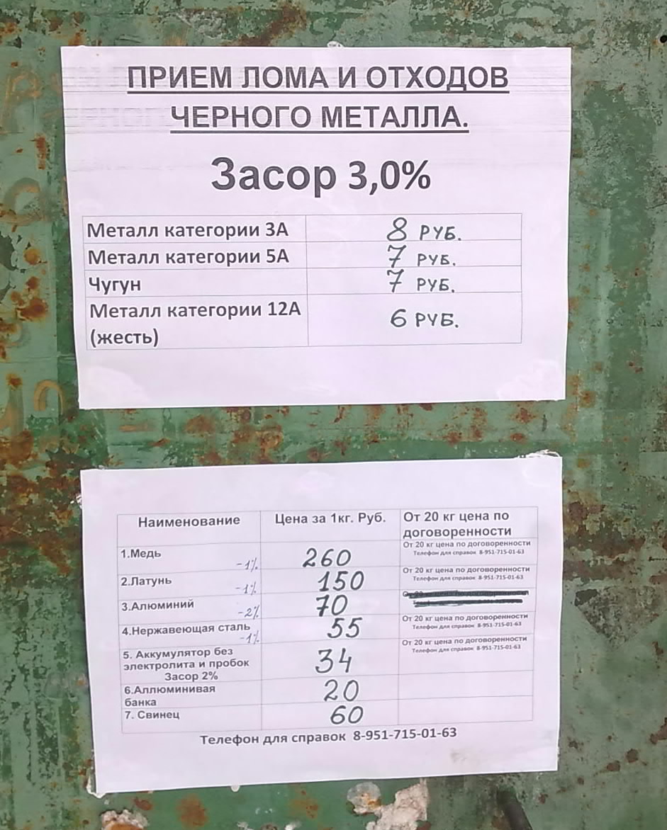 QUOTE(Семён Семёнович @ Feb 6 2015, 21:55) в Пятиорске алюминий пищевой и электротех - 115р медь - 315 р латунь 168 бронза - 212 железо - 10 рублей Я же говорю, сговор. Две приемки, цены одинаковые: медь 140р бронза 70р железо 7р. Хотя до Пятигорска 90км. -------------------- Время легкий бисер нижет: Час за часом, день ко дню....