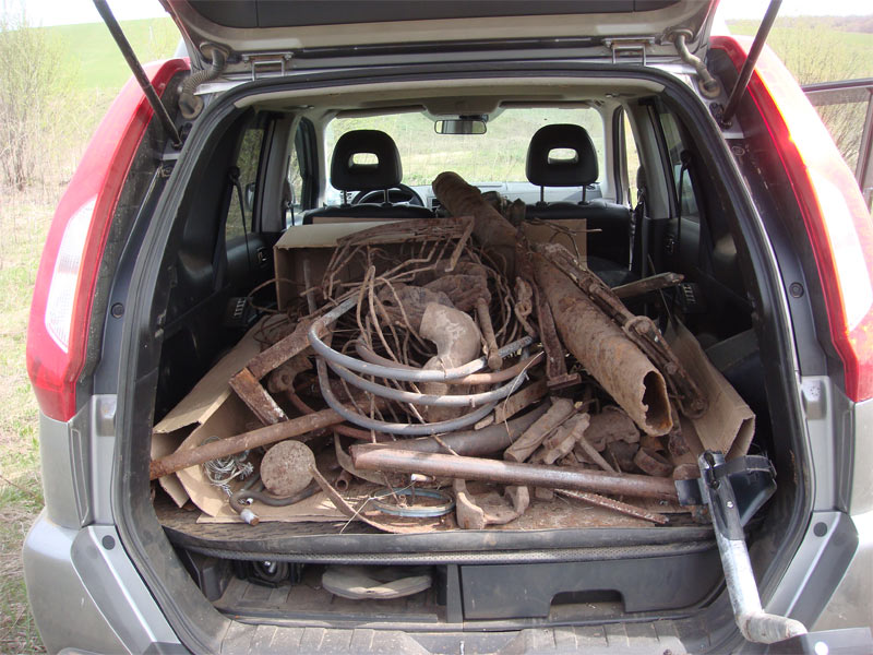 Выбрался сегодня на заброшенную ферму. Вроде как не копаная. Звенит вся земля. Покопал часа три, сколько по весу вышло не знаю, но машина по грунтовке шла тяжело... Много разрушенных бетонных перекрытий - жаль нет бензореза...