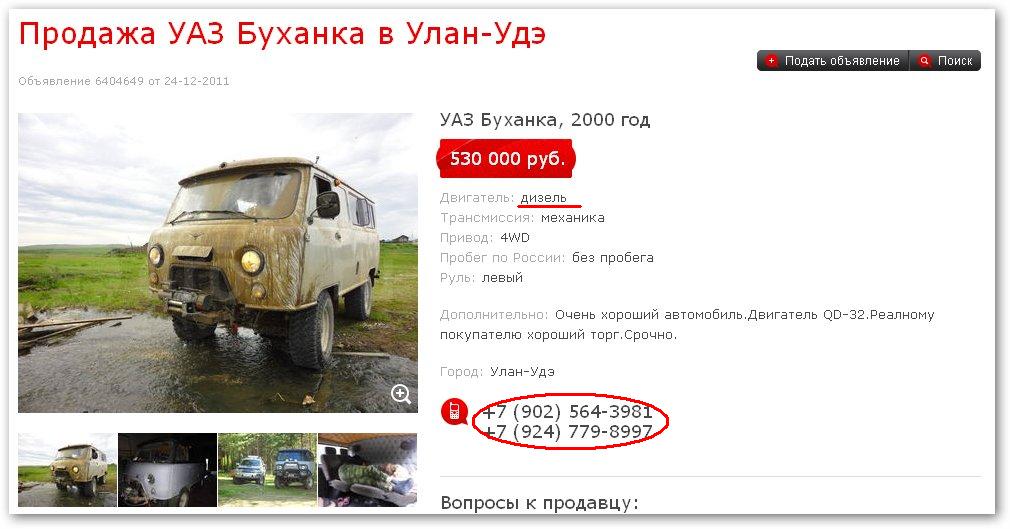QUOTE(практик @ Jan 20 2012, 15:23) А если на буханку дизель поставить надо сейчас переоформлять что нибудь? Все ответы есть на Уазбуке.)))) |