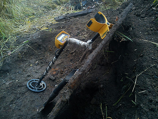 Всем привет!Нашёл статью по истории торфопредприятия.В которой указывается, где какие рельсы были уложены, где отгружался торф, где вагоны слетали с насыпи. Теперь надо проводить разведку.На днях съездил на один участок у-ки, где были уложены рельсы Р 24. Сразу несколько разочерований, подкладок нет, так как были установлены бетонные шпалы, да по сомой у-ке проехать не возможно, по всей длинне валяются вывороченные шпалы.края насыпи, сильно заросшие, с прибором практически не пролесть.По той же причине не смог найти место отгрузки торфа.Придётся ждать весны.