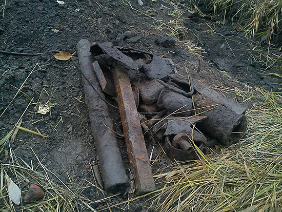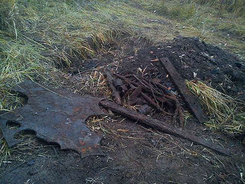 Не смотря на сырую погоду и почти нулевую видимость, сегодня выбрался на своё любимое АТП. Вчера начал раскапывать свалку и лопата уперлась во что-то громоздкое. Разгреб и увидел металлическую пластину. Но силы были на исходе и оставил её на следующий день. Сегодня разгреб, обкопал пошире и достал "плитку шоколада" толщиной около 2-ух см., из которой что-то вырезали. А под ней, просто клондайк. Арматура, уголки и еще одна пластина длиной 1,5 метра и толщиной 3 см. Ну и общий итог за вчера и сегодня (там где побольше) Сообщение отредактировано Garett: Oct 26 2015, 22:27 Вложенные эскизы изображений |