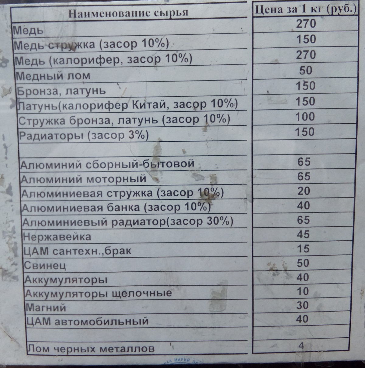 Цена на металл упала, тройка 5,5р/кг. Цветной держится: медь 220р\кг, латунь 100р/кг.