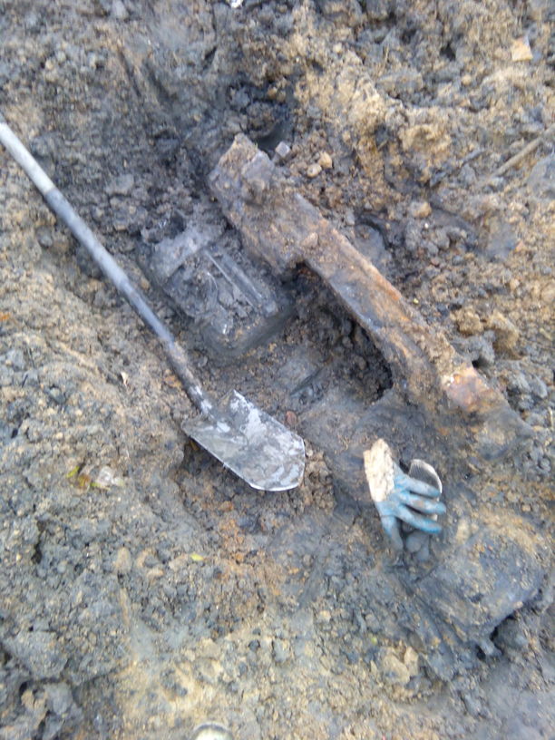 Сегодня левая рука отказалась нажимать на лопату, болит с прошлого выезда, так как приходится долбить землю вместе с кирпичом и камнем.