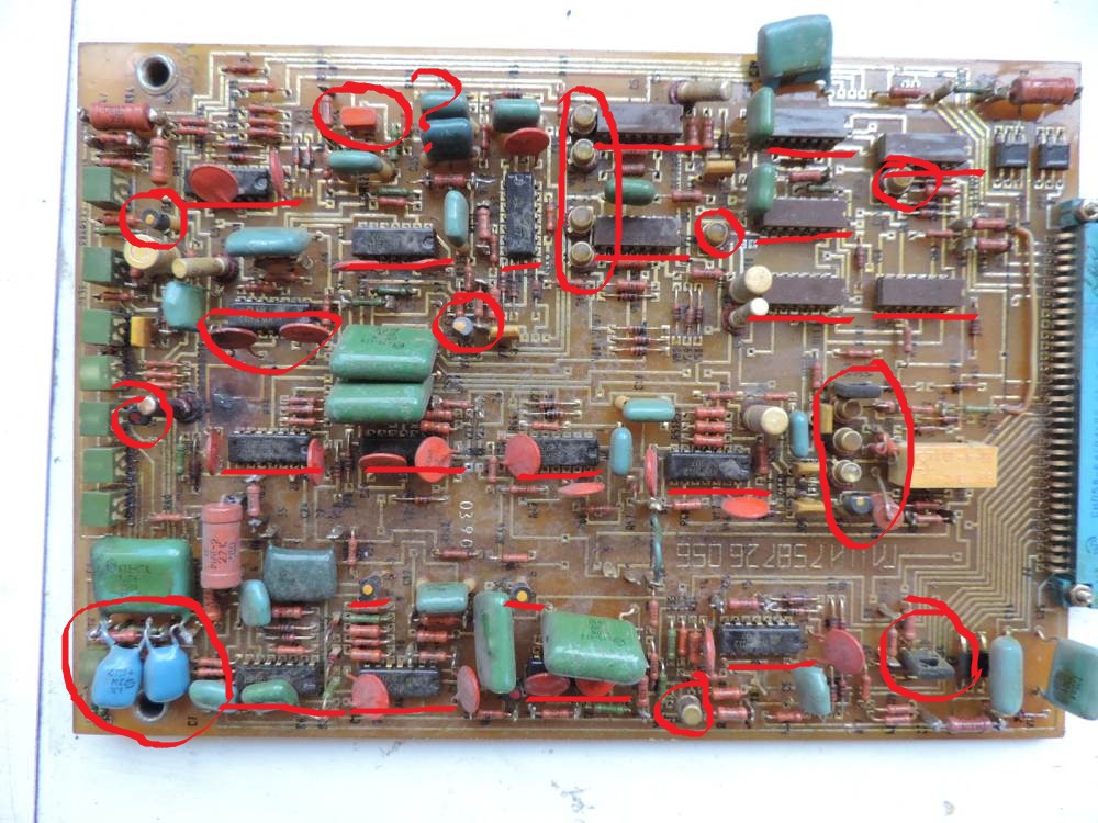 микросхемы скусывать все. Если одинаковая маркировка, то раскусить и проверить на позолоту. Транзы с дырдочкой (КТ814 и аналоги) также скусить и раскусить. Полубочата черные тоже скусывать. Красные круглые кондеры тоже забирать. Ну и КТ203 если не ошибаюсь (с металлической шляпой) тоже вырвать.