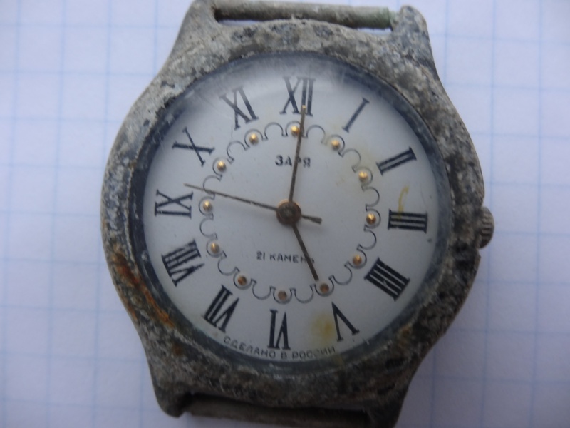 Выкопал вот такие часы, стрелки из желтого металла, блестят.