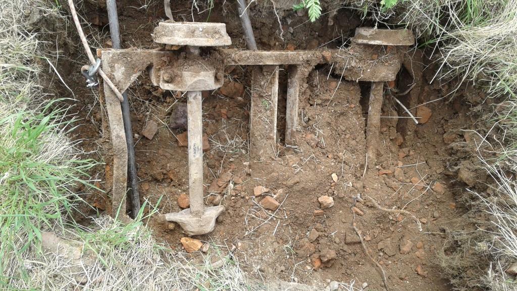 Покопал вчера денёк.Откопать откопал,а вытянуть не могу.Уже и ломы подставил,что бы по ним тянуть,но не тянется.Оказалось связана проволокой с такой же железякой.Досмотрел когда уже начал первую разбирать.Гайки пошли на удивление легко,правда несколько раз по ним нужно было предварительно ударить. Вторую разбирать не стал.Общий итог 220кг.