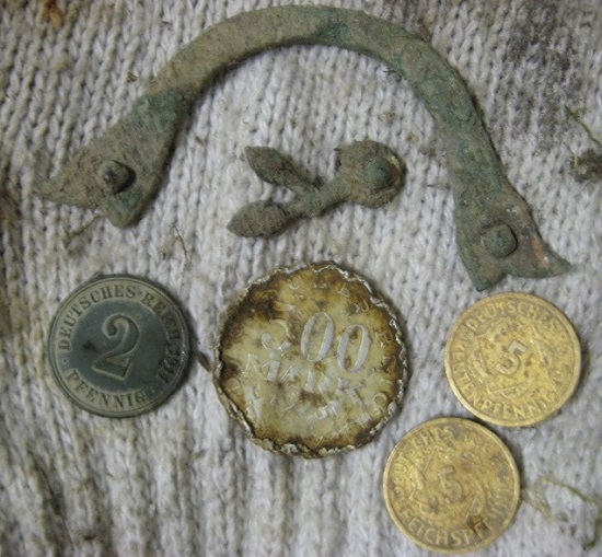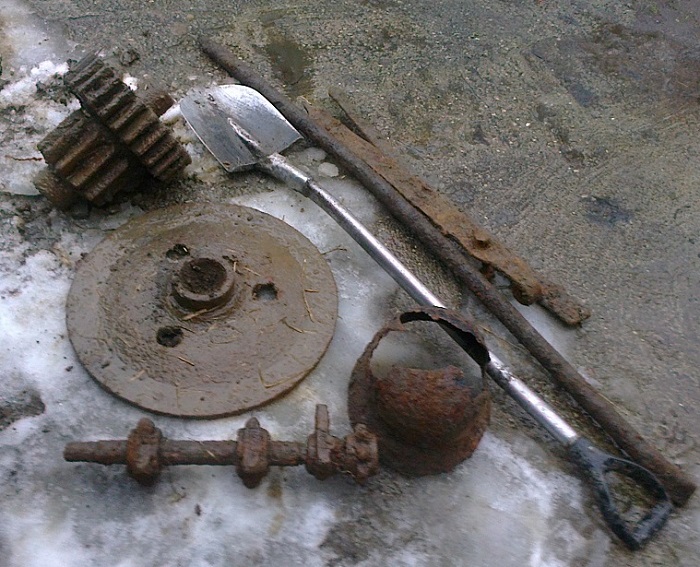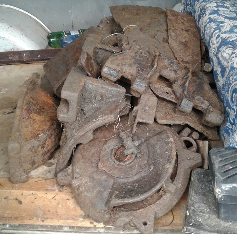 В субботу с обеда выехал вновь покопать монетки. Попутно откопал двойную шестерню от ЧТЗ и фланец ведущий. Вес составил 55 кг, всё ушло на металл. Чёрный металл - 10 рублей за кг, медь 280 руб, Калининград.