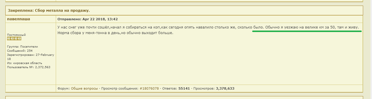 QUOTE(DMITR @ Feb 12 2019, 21:06) [COLOR=blue] Вот по этому тема стала мертвой по сути и повылазили сказочники. Все меньше хочется писать. Давно вас знаю по форуму, как порядочного и справедливого человека, но тут вы не правы в суждениях. Отвечать не обязательно, дабы незахламлять тему. Про тяжелое наше время полностью согласен. А я согласен с GoWest,полностью... Деньги любят тишину! Где то ролик был,не давно... Чел какой то жалуется В.В....,мол выкупили базу,а с ней много-много чермета....А приехали туда...А чермета то и нет! Всё спи.....увезли,мол окоянные-нелегальные охотники за черметом!Порядка то мол нет! И В.В. согласился,нахмурив брови и поручил опричникам....мол,нааадо наводить порядок,мол огромные мульярды там крутятся,"чёрного",не обложенного налогами нала,поэтому нааадо наводить порядок,думать мол будем! А коллеги ролики показывают,как богатеют сказочно,не делясь и не платя никому! А некоторые ПавелпашИ, даже по 4 тонны в день умудряются копать Сообщение отредактировано ВсёПочестному: Feb 12 2019, 21:30 Вложенные эскизы изображений -------------------- Весь день не спишь, всю ночь не ешь — конечно, устаёшь... !