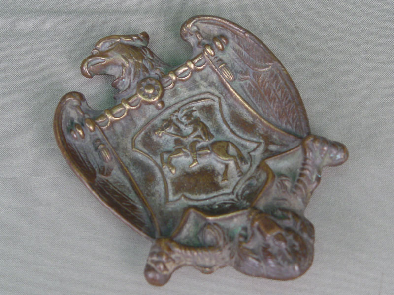 QUOTE(ОлВер @ Nov 5 2019, 17:26) На пепельницу не похоже. Странно. Герб Московский, а орел одноглавый. На московском всадник с копьём, а здесь с саблей. |