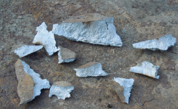 А это осколки лежат на скраповине, одна сторона которой идеально ровная, а другая полукруглая--похожая на пряник в 150кг...