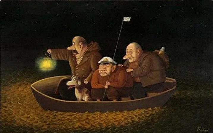 художник Валентин Губарев, "Трое в лодке не считая собаки"...