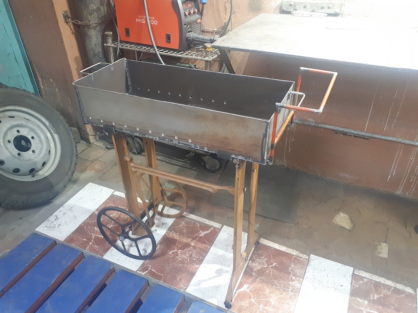 Тут как то еду мимо мусорных баков , глядь , а рядышком с баками сиротливо стоит станина от швейной машинки . Обычно такие вещи долго не задерживаются , а здесь мне повезло оказаться в нужное время в нужном месте. Забрал станину, решил мангал из неё соорудить. В одну из поездок на приёмку присмотрел колесо точно такое ,как с моей станины. Ну вот комплект на мангал и собрался. Вложенные эскизы изображений -------------------- И кто бы что ни говорил, я сам добыл - и сам пропил. И дальше буду делать точно так..(В.С. Высоцкий)