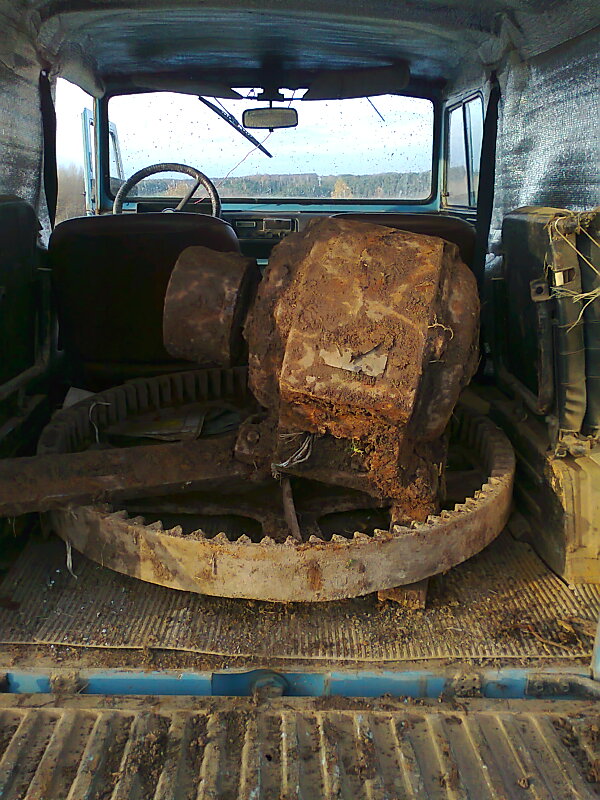 Намедни копался себе по старине, бродил по окрестностям давно сгинувшей деревни "№", ну и набродил над одним из овражков на остатки то ли кузни, то ли еще чего, но нога черметокопателя там не ступала-это факт. Чермета валом! Какие-то заготовки из пластин, валы, лемеха, 5 мм пластина из чермета 1м*1м, задолбался копать. Кроме того две бронзовые шестерни килограмма по 2 в каждой. Вот только проблема вывезти оттуда все, километра два по оврагам прыгал пока дошел туда, подъезда нет ваще, на себе тащить..... Не моя весовая категория. Наковырял около 200 кг, но это поверхностно, тотальной зачистки не делал. Наверное дождусь зимы, может болото в овраге замерзнет, тогда и вывезу на своем козлике. Приятно было, что я там первый.