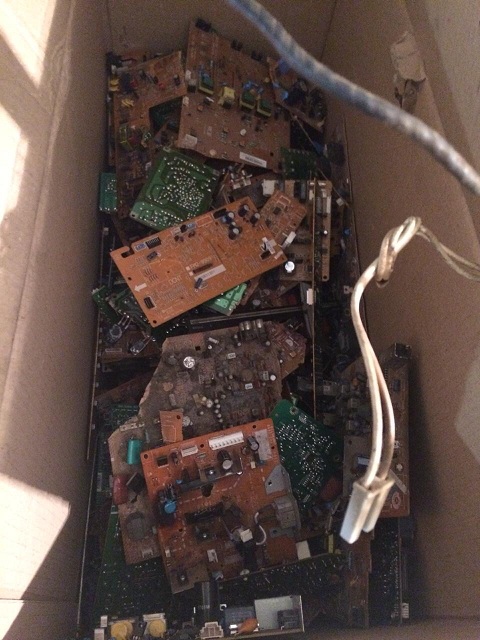 Относительно плат, территориально Челябинск. Как хобби и не большой доп доход занимаюсь вывозом техники, иногда отдают приличное количество, Газелью приходиться вывозить и на своей, легковой тоже собираю. С так называемой "мониторки" снимаю всю "визуальную" медь (трансформаторы, дроссели, катушки, реле и прочее), так же снимаю весь алюминий, железо, пластик. С советской техники снимаю, помимо выше описанного, все приёмные детали, что не скусывается, выпаиваю феном, сейчас начал снимать даже флажки и МЛТ, их тоже начали принимать. Платы получаются как на фото в коробке. Такие платы сдавались по 45, 50 и последний раз по 65. Не так просто еще найти кто готов за такую цену покупать, обычно минимальная партия у меня не меньше 100 кг, накапливается примерно за пол года. Так называемые платы управления от всякой офисной техники (МИКС на фото) это те которые зеленые с двух сторон отправляю в Москву (был тут одно время форумчанин с ником Лог). Фото последнего расчёта для наглядности прикладываю, это было в начале ноября. На счёт голых плат, у нас только в мусор или подмешивать по чуть чуть, а так не слышал что бы их принимали))).
