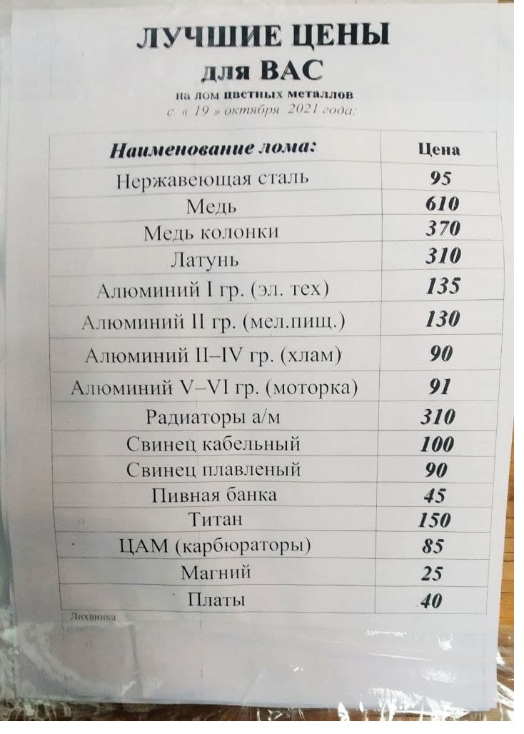 QUOTE(elle @ Oct 24 2021, 12:46) Всем здоровья! Ребят, нашла я на заросшей лесной помойке горку кабеля биметаллического. Заманчиво - сдать. Но я по истории спец, а тут много вопросов. 1. Будут ли докапываться - откуда дровишки? (А я не знаю, откель там это - обрезки разной длины), помойка задернилась уже, всякая жбонь со стройки. Собственно - принимают ли такой - снаружи медь, внутри железо. Спасибо заранее. вопросов вряд ли зададут , но примут по цене железа или скажут отделить котлеты от мух , а это ой как геморно -------------------- связаться со мной - moroz.ml@mail.ru