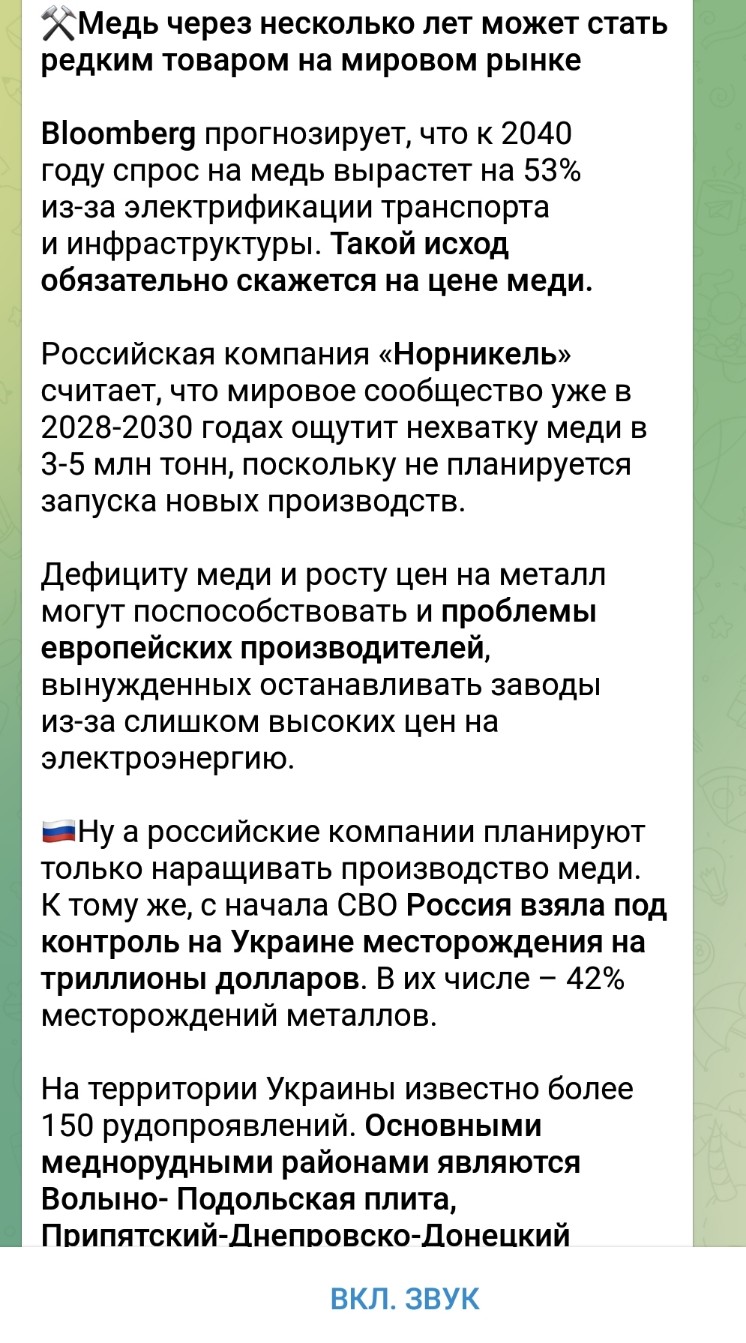 QUOTE(Изгнанник @ Sep 8 2022, 14:12) Медь надо копить!И чуть-чуть подождать. Такая же перспектива у свинца. -------------------- Копая там, где ты копал, вопрос простой, -а ты там клал?