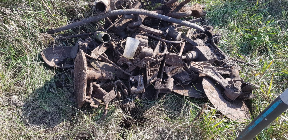 В 78 в прошлом году видел целый кузов буханки прямо у лесной просеки, да и вокруг хватало где поляна вся звенит, где в лес отошёл всякие траки-колёса тракторные, в ином месте остов техники с фрагментами двигателя под ЛЭП в зарослях, а тут где-то уже в бетон закапываются