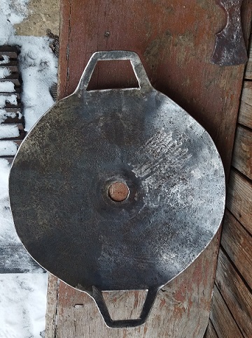 QUOTE(Платоныч @ Jan 15 2023, 19:15) Добрый вечер уважаемое сообщество! Кто ни будь делал сковороду из вот такой дисковой бороны? В прошедшем сезоне при поисках попалось несколько таких Пока выпилил и зачистил до вот такого состояния, далее отверстие заварю. Потом по информации из глобальной сети - нужно нагреть на сильном огне до синевы металла, потом греть с солью пока она -соль не поменяет цвет, и натереть за несколько приёмов льняным маслом. Как думаете этого достаточно, или есть ещё какой то секрет? Пока планирую без крышки делать, но с подставкой. Доброго! Секретов никаких нет. Засыпаете равномерно соль по всей поверхности сковородки и греете на костре несколько часов. Саджи эти хорошо продаются, только лепестки не отрезаются, но можно сделать так же, как и у вас. |