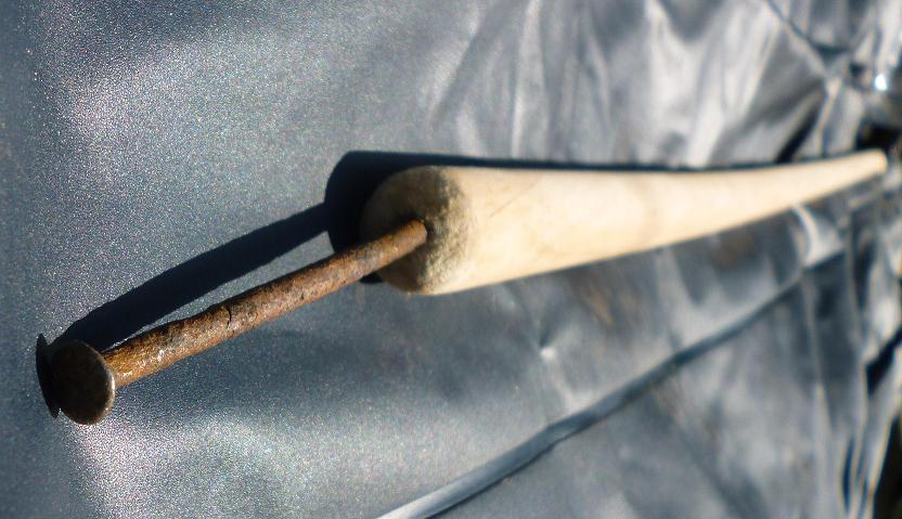 QUOTE(SCHOONMAKER @ May 19 2014, 16:21) Гаспадин M.German,мая инагда капаит в речки в гарах....в Ардены или каменистий пляжа! Есть окала Франций красивий такой речка на границе с Бельгией ,тоже ана пална шмурдяка и разного дерьма....Рибкя есть и очень бальшой плааваиит! Пискарь на10 кг....есть и больше! Но инагда мине пападаится манетос! -Он и радует душу...инагда даже зацепица и кальцо залатой ,бил такой нескалькараза... Короче .... поделюсь так сказать....личным опытом. - Изготовление приспособления и дёшево и удобно! Всё просто - у меня приспособа которая помогает вытаскивать монеты и особенно любые колечки! И именно на речной гальке....нужно её зделать и будет тебе счастье! Вообщем надо найти хорошую палку из чего удобней....я пользуюсь деревеянной от швабры! Только не железку! Детектор у меня реагирует на всё течение....если оно сильное болтанка приличная...немного баланс грунта меняется,но искать можно! Фото прилагаю: 1-Забей гвоздь сотку или больше ,какой найдёшь...в торец! Как на фото. Гвоздь должен быть обязательно со шляпкой! В ней в шляпке и есть соль скупа для горной речки или любого галечного пляжа! Даже на сильном течении ей шляпкой можно отодвинуть ,раскидать камни или поднять колечко со дна просунув гвоздь в кольцо! Именно благодаря шляпке даже на сильном течении кольцо достать не проблема! Много раз так у меня и было!....Если вода прозрачная то это зделать легко...сложнее в мутной.... А ещё сложнее на течении поднять монету,для этого на другой стороне надо просто закрепить баклашку и обрезать её как маленький скуп! Вытаскиваеш из под камней манету и кладёш её на камень!А потом сапогом в скуп!Я приспособился! - Но надо для начала закрепить крышку от баклашки, просто пробив в ней парочку дырочек ножиком и зделать зарубки-канавки для хлоровиниловых ремешков! Тогда на течении её не оторвёт!Ещё для надёжности обмотать скочем!Чтобы не откручивалась!А потом обрезать в маленький скуп... И можно приподнимать и отодвигать таким гвоздём приличные камни! Я помогаю сапогом и одновременно гвоздем ,и держу палку двумя руками!Детектор болтается на ремне на течении,когда надо смотрю куда снесло цель! Ну сама суть придёт с опытом работы....мне лично удобно....Пару раз гвоздь отрывало!Камни были киллограмов по пять.....Не проблема ,тамже на речке отрезаю место слома и забиваю новый гвоздь! -Гвозди держу в сумке прозапас ,беру любой булыжник и забиваю!И всё работает снова! ...Я всeгда жду сезона....когда вода течёт прозрачная....Тогда самый кайф....Скупом на гальке работать тоже можно....только на мелкой! У меня есть и такой скуп...зделанный для тяжелого грунта....я его Экскаватором называю! А если в реке булыжники...то только гвоздь мне и помошник!Выкавыриваю монетос даже...из под неподьёмных! Или щелей в скалах! А потом закинуть в скуп дело техники... Как я понял этот инструмент для того чтоб поднять уже видимую вещь(кольцо,монета).Ну если глубина и чтоб не погружатся телом в воду. В принципе это важно..так как глубина там не большая а с поляризационными очками дно практически видимо. Всегда слышал про гвоздь с палкой, как бы в пословицах что ли.. Ну теперь хоть понял для чего это использовалось) Плюсануть не могу но респект от души! |