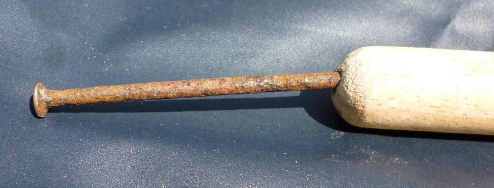 QUOTE(SCHOONMAKER @ May 19 2014, 16:21) Гаспадин M.German,мая инагда капаит в речки в гарах....в Ардены или каменистий пляжа! Есть окала Франций красивий такой речка на границе с Бельгией ,тоже ана пална шмурдяка и разного дерьма....Рибкя есть и очень бальшой плааваиит! Пискарь на10 кг....есть и больше! Но инагда мине пападаится манетос! -Он и радует душу...инагда даже зацепица и кальцо залатой ,бил такой нескалькараза... Короче .... поделюсь так сказать....личным опытом. - Изготовление приспособления и дёшево и удобно! Всё просто - у меня приспособа которая помогает вытаскивать монеты и особенно любые колечки! И именно на речной гальке....нужно её зделать и будет тебе счастье! Вообщем надо найти хорошую палку из чего удобней....я пользуюсь деревеянной от швабры! Только не железку! Детектор у меня реагирует на всё течение....если оно сильное болтанка приличная...немного баланс грунта меняется,но искать можно! Фото прилагаю: 1-Забей гвоздь сотку или больше ,какой найдёшь...в торец! Как на фото. Гвоздь должен быть обязательно со шляпкой! В ней в шляпке и есть соль скупа для горной речки или любого галечного пляжа! Даже на сильном течении ей шляпкой можно отодвинуть ,раскидать камни или поднять колечко со дна просунув гвоздь в кольцо! Именно благодаря шляпке даже на сильном течении кольцо достать не проблема! Много раз так у меня и было!....Если вода прозрачная то это зделать легко...сложнее в мутной.... А ещё сложнее на течении поднять монету,для этого на другой стороне надо просто закрепить баклашку и обрезать её как маленький скуп! Вытаскиваеш из под камней манету и кладёш её на камень!А потом сапогом в скуп!Я приспособился! - Но надо для начала закрепить крышку от баклашки, просто пробив в ней парочку дырочек ножиком и зделать зарубки-канавки для хлоровиниловых ремешков! Тогда на течении её не оторвёт!Ещё для надёжности обмотать скочем!Чтобы не откручивалась!А потом обрезать в маленький скуп... И можно приподнимать и отодвигать таким гвоздём приличные камни! Я помогаю сапогом и одновременно гвоздем ,и держу палку двумя руками!Детектор болтается на ремне на течении,когда надо смотрю куда снесло цель! Ну сама суть придёт с опытом работы....мне лично удобно....Пару раз гвоздь отрывало!Камни были киллограмов по пять.....Не проблема ,тамже на речке отрезаю место слома и забиваю новый гвоздь! -Гвозди держу в сумке прозапас ,беру любой булыжник и забиваю!И всё работает снова! ...Я всeгда жду сезона....когда вода течёт прозрачная....Тогда самый кайф....Скупом на гальке работать тоже можно....только на мелкой! У меня есть и такой скуп...зделанный для тяжелого грунта....я его Экскаватором называю! А если в реке булыжники...то только гвоздь мне и помошник!Выкавыриваю монетос даже...из под неподьёмных! Или щелей в скалах! А потом закинуть в скуп дело техники... Как я понял этот инструмент для того чтоб поднять уже видимую вещь(кольцо,монета).Ну если глубина и чтоб не погружатся телом в воду. В принципе это важно..так как глубина там не большая а с поляризационными очками дно практически видимо. Всегда слышал про гвоздь с палкой, как бы в пословицах что ли.. Ну теперь хоть понял для чего это использовалось) Плюсануть не могу но респект от души! |